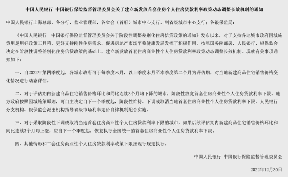 在《中国人民银行 中国银行保险监督管理委员会关于建立新发放首套住房个人住房贷款利率政策长效机制的通知》中有提到: